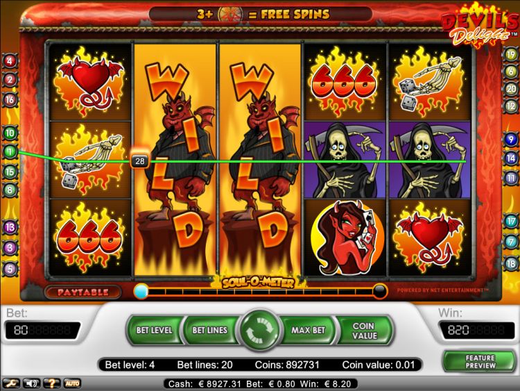 Devil’s Delight is een oudje. CasinoFisher bedoelt bijna: zo worden ze niet meer gemaakt. En dat klopt. Het uitbetalingspercentage van de Devil’s Delight gokkast is lekker hoog, namelijk 97,6 procent.
