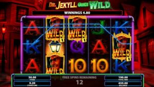 Dr. Jekyll Goes Wild is natuurlijk geïnspireerd door het verhaal van Dr. Jekyll en Mr. Hyde. Jekyll verandert in een meedogenloos bloeddorstig beest na enkele mislukte tests in zijn laboratorium. Scientific Games heeft er een zeer aantrekkelijke online gokkast van gemaakt .