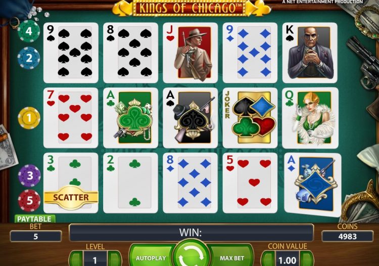 Een buitenbeentje qua gameplay is Kings of Chicago. De gokautomaat Kings of Chicago is een kruising tussen videopoker en een online gokkast. Videopoker is een van de best betalende casinospellen. De Kings of Chicago slot doet nauwelijks onder voor videopoker. Het doel is om een zo waardevol mogelijke pokerhand te draaien. Is het je ooit gelukt om een Royal Flush te draaien op een gokautomaat? Waarschijnlijk niet. Dat kan bij Kings of Chicago. In feite is de Royal Flush de meest lucratieve combinatie.